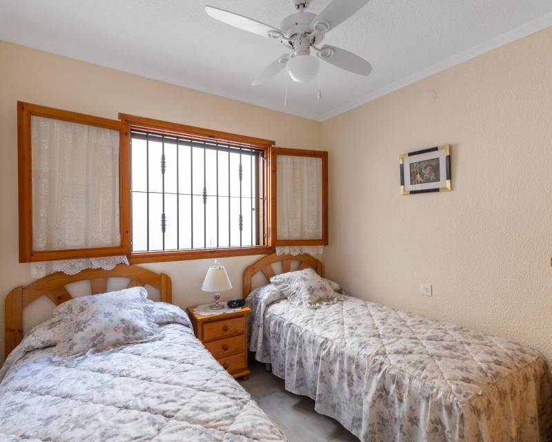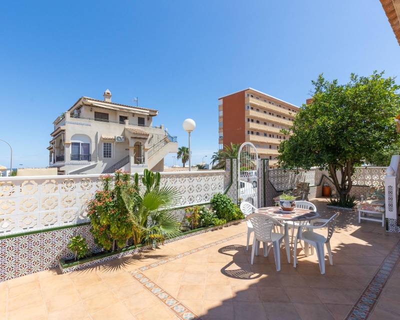 Discover this charming family villa located in the Torreblanca area of Torrevieja. With a constructed area of 80 m2 and a usable area of 78 m2, this property is ready to move into. The home features three spacious double bedrooms that offer comfort and privacy, ideal for families. It also has a full bathroom and an additional toilet. Its southeast orientation ensures light throughout the day.~~The plot has a total area of 40 m2 where you can enjoy the outdoors thanks to its private terrace surrounded by mature trees that provide natural shade.~~Notable extras include a refreshing pool, perfect for those warm summer days, as well as a security door to ensure your security. Strategically located near the sea (just 900 meters), you will have easy access to both beaches and various local amenities; nearby buses facilitate transportation, while shopping centers, schools, and medical facilities are available within the immediate area.~~You can also take advantage of the children's play areas, ideal for children, whether playing or exploring outdoors without worry, as the property is fenced, offering greater peace of mind.