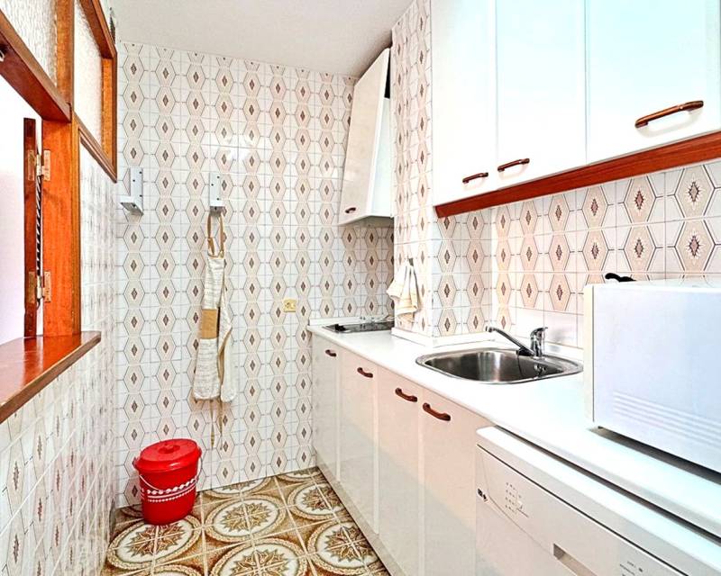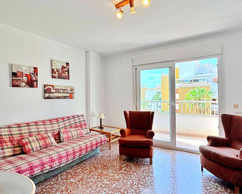 This cozy 4th-floor apartment with 1 bedroom and 1 bathroom is in its original condition but well maintained, ready to move into and enjoy. With a built area of approximately 50 m², it offers a bright atmosphere thanks to its orientation and its terrace with side sea views. The living-dining room is spacious and functional, with direct access to the terrace, an ideal place to relax outdoors while enjoying the Mediterranean breeze. The independent kitchen keeps its original design, well distributed and connected to the living area through a serving hatch, which adds comfort to daily life. The bedroom includes a built-in wardrobe and receives plenty of natural light, while the bathroom maintains its classic original style. Edificio Lyon, located in the sought-after area of Rocío del Mar, offers a community swimming pool and parking area, providing comfort and tranquility. The urbanization is surrounded by all necessary services: supermarkets, restaurants, public transport, and leisure facilities. Its location is excellent, just a few minutes’ walk from Rocío del Mar and Punta Prima beaches, making this apartment an ideal option as a permanent residence, holiday home, or rental investment.