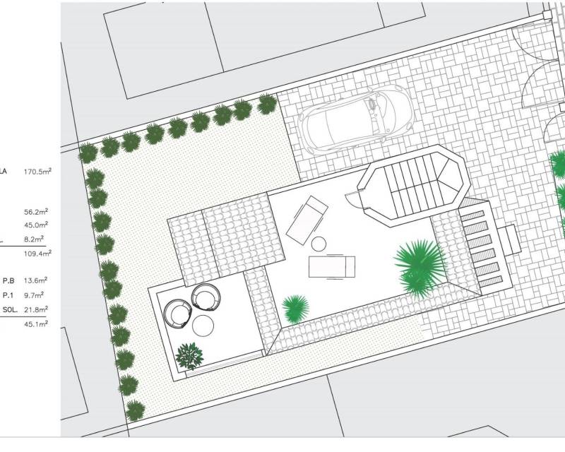 NEW BUILD RESIDENTIAL IN SAN FULGENCIO Residential complex of independent and semi-detached villas in San Fulgencio. The houses consist of 3 bedrooms, 3 bathrooms, living room and separate kitchen, 2 terraces on the ground floor, one terrace on the 2nd floor and a solarium on the roof. Each property has private garden and parking space. There is a large communal swimming pool. San Fulgencio is a comfortable and convenient area, known for its excellent infrastructure. In the immediate vicinity of cafes, restaurants, bars, pharmacies, 3 large supermarkets: Lidl, Aldi, Mercadona. Residential complex is located 10 minutes by car from the beach and also 10 minutes from the most famous in this area leisure and family center ¨La Marina Resort¨ with a water park, camping, gym, spa, restaurants, shops and cafes. Residential complex has a unique location – 30 minutes by car from the airport, 40 minutes from the city of Alicante and 20 minutes from the city of Torrevieja.
