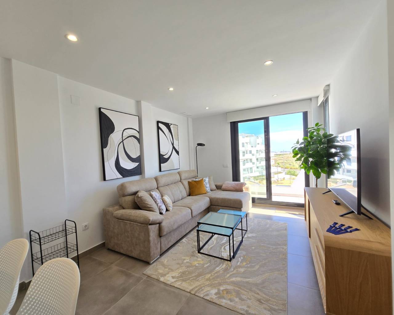 Discover this recently built, ready-to-move-in apartment in the exclusive Santa Rosalia Lake & Life Resort, one of the most unique and luxurious residential resorts on the Costa Cálida. This stylish apartment combines modern comfort with high-quality finishes and offers a peaceful, resort-style lifestyle just minutes from the coast. Layout & Comfort The apartment has 2 spacious bedrooms and 2 fully equipped bathrooms, perfect for families or guests. The bright and open-plan living and dining area seamlessly connects to a private terrace, ideal for enjoying the Mediterranean sun or a relaxed al fresco dinner. Facilities Residents have access to two communal swimming pools, one of which is heated for optimal comfort all year round. There is also a small outdoor gym, children's playground and a communal jacuzzi for ultimate relaxation. Extras The apartment comes with an underground parking space and a private storage room, offering extra convenience. Santa Rosalia Lake & Life Resort Built around an impressive artificial lake with crystal clear water, this prestigious resort offers numerous recreational facilities such as sports fields, a mini golf course, a fully equipped gym, and a modern clubhouse with restaurant and bar. The resort guarantees an active, social and relaxed lifestyle in a safe and beautifully maintained environment. Perfect as a permanent home, holiday home or investment. Suma: To be allocated. Community fees: 2640 euro/year