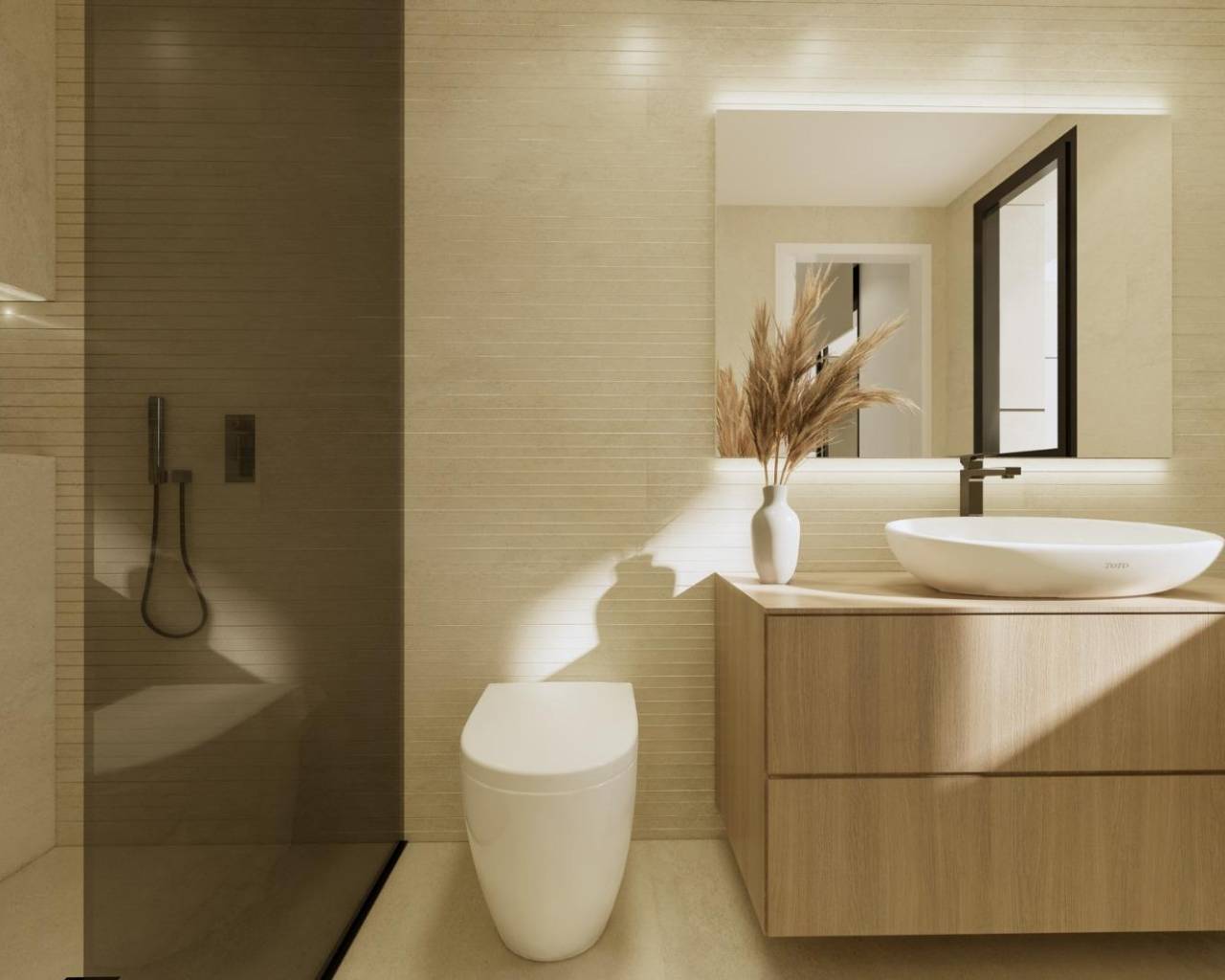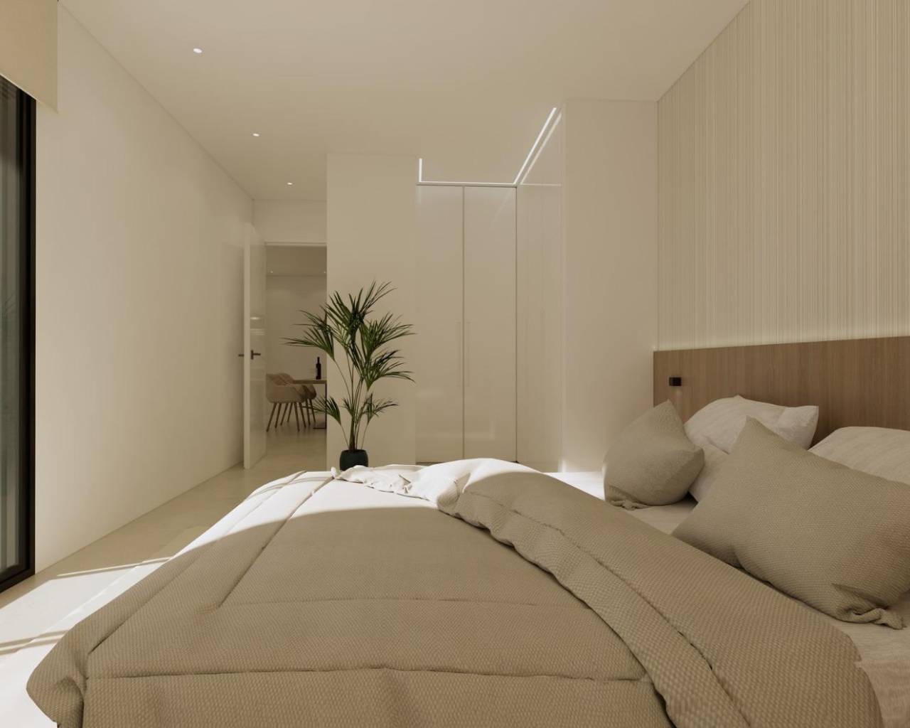 Modern New Build Villas in Dolores, Alicante Contemporary Living in the Heart of the Vega Baja Discover this exclusive new build villa development in Dolores, a charming town in the Vega Baja del Segura region, south of Alicante. Known for its traditional Spanish character and surrounded by lush countryside, Dolores offers a peaceful lifestyle while providing all daily amenities within walking distance — shops, restaurants, schools, and local services. Situated just 12 km from the beaches of La Marina and Guardamar del Segura, and with easy access to the AP-7 motorway, this residential area is perfectly connected to the main coastal towns of the Costa Blanca. Elegant Modern Villas with Private Pool These modern two-story villas have been designed for comfort, functionality, and style. On the ground floor, you’ll find a bright open-plan kitchen connected to the living-dining area, with large sliding doors opening directly to the terrace and private garden with swimming pool. The ground floor also features one bedroom with an ensuite bathroom, a guest toilet, and a convenient outdoor laundry area. On the first floor, there are two additional bedrooms, a bathroom, and access to a large 60 m2 open terrace, perfect for sunbathing or relaxing while enjoying the Mediterranean climate. Each home includes private parking inside the plot. Quality Finishes and Modern Comfort Built with high-quality materials and contemporary design, these villas come fully equipped for year-round living. Main features include: Exterior carpentry with thermal bridge break Motorized blinds Hot water system powered by aerothermal energy Ducted air conditioning fully installed Private swimming pool Private parking and landscaped garden The interiors combine elegance and functionality, maximizing natural light and offering an exceptional living environment with a strong connection between indoor and outdoor spaces. Prime Location Close to Everything Dolores enjoys a strategic location, providing a balance between tranquility and accessibility. Key distances: Beaches of La Marina and Guardamar del Segura: 12 km Alicante Airport (Elche-El Altet): 30 km (25 minutes by car) Murcia-Corvera Airport: 70 km (1 hour by car) Golf Courses: 15 km Alicante city: 40 km Live the Mediterranean Lifestyle in Dolores These new build villas in Dolores offer the perfect combination of modern design, comfort, and proximity to the coast. Ideal for both permanent residence and holiday living, they provide a serene Mediterranean lifestyle surrounded by nature and convenience. Contact us today to arrange a viewing and make your dream home in Dolores a reality.
