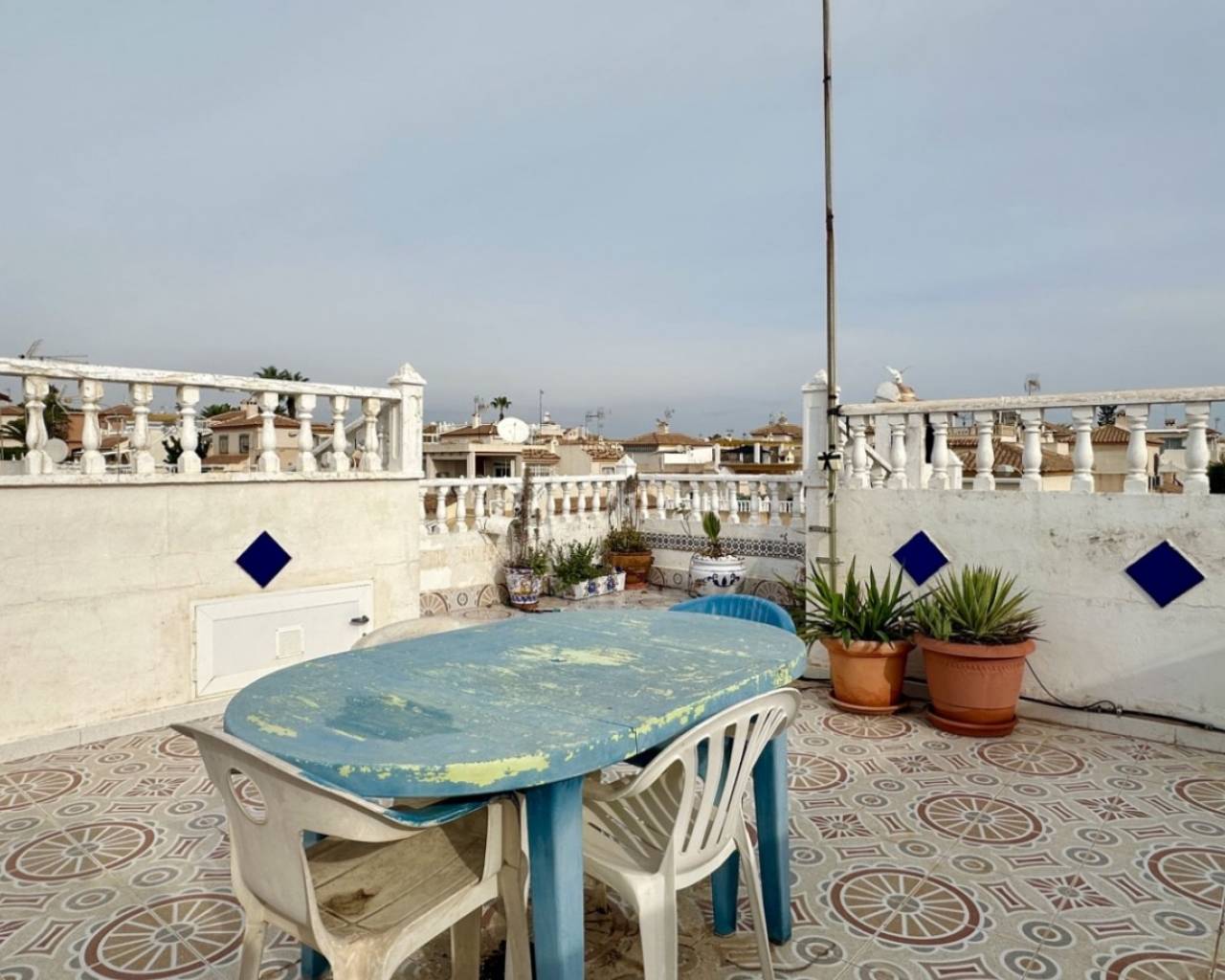 Discover this charming townhouse located in the popular residential area of Los Altos, just a short drive from the beaches of Punta Prima and Playa Flamenca.The property offers 3 bedrooms and 2 bathrooms, a private garage, and a large rooftop solarium with a barbecue area – perfect for enjoying the Mediterranean sun. On the ground floor, you’ll find a bright and spacious living room with direct access to the garage, providing extra storage or potential to create a hobby room or guest space. The townhouse is ready to move in, though it could benefit from some renovation to reach its full potential. Whether you’re looking for a holiday home, a family residence, or an investment opportunity, this property offers great value in one of Orihuela Costa’s most desirable areas.