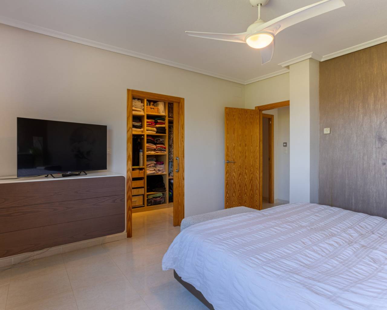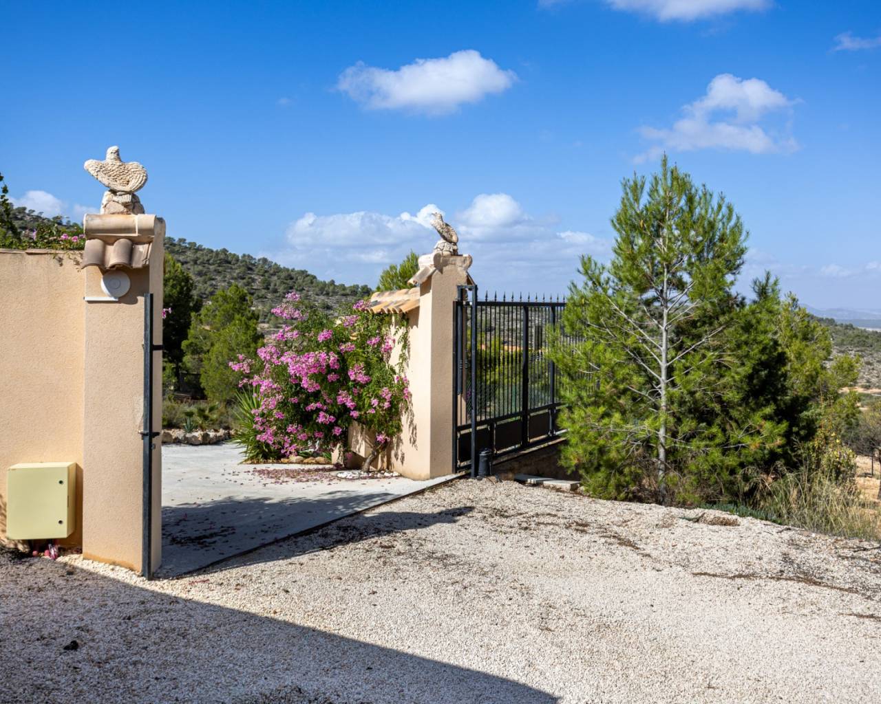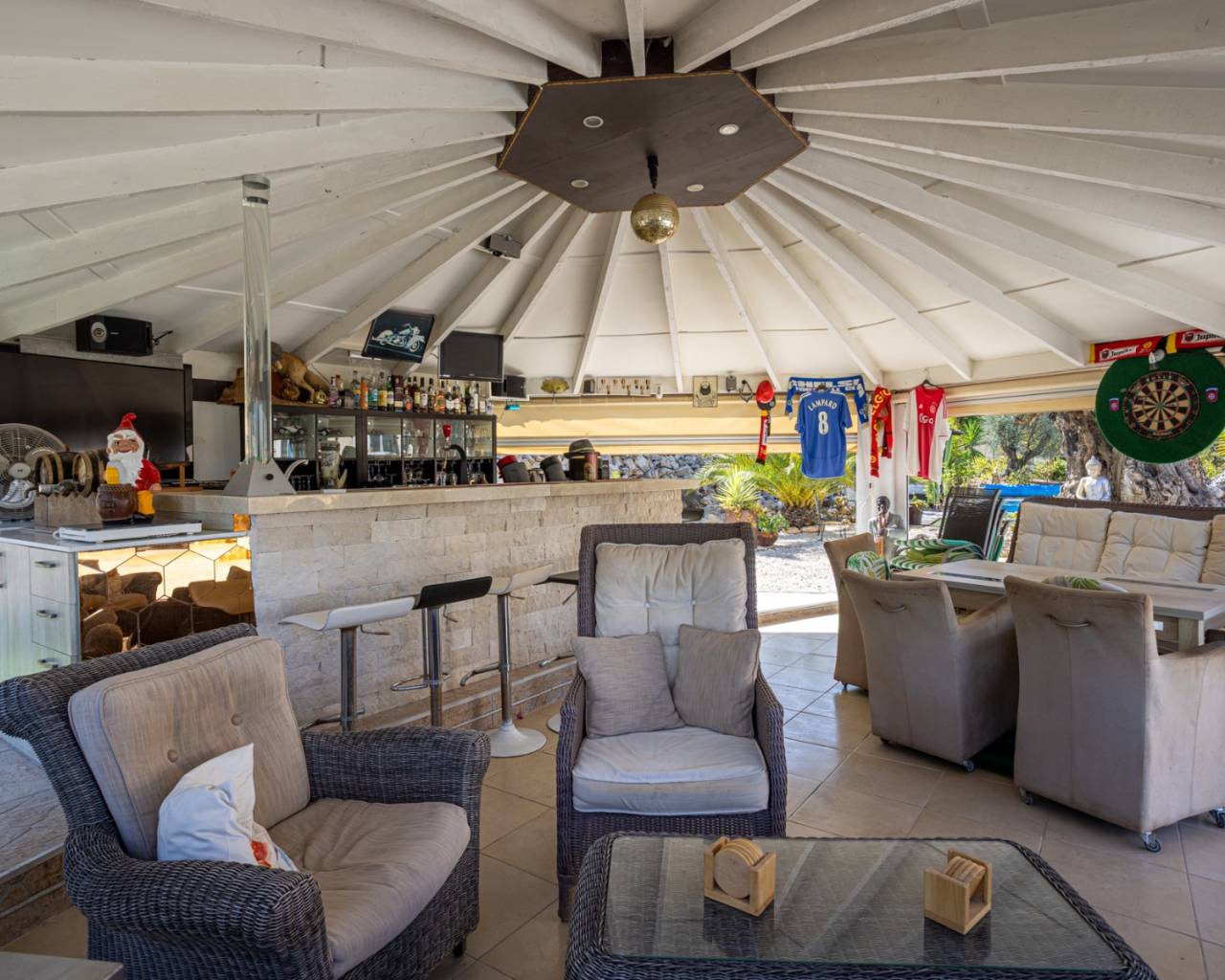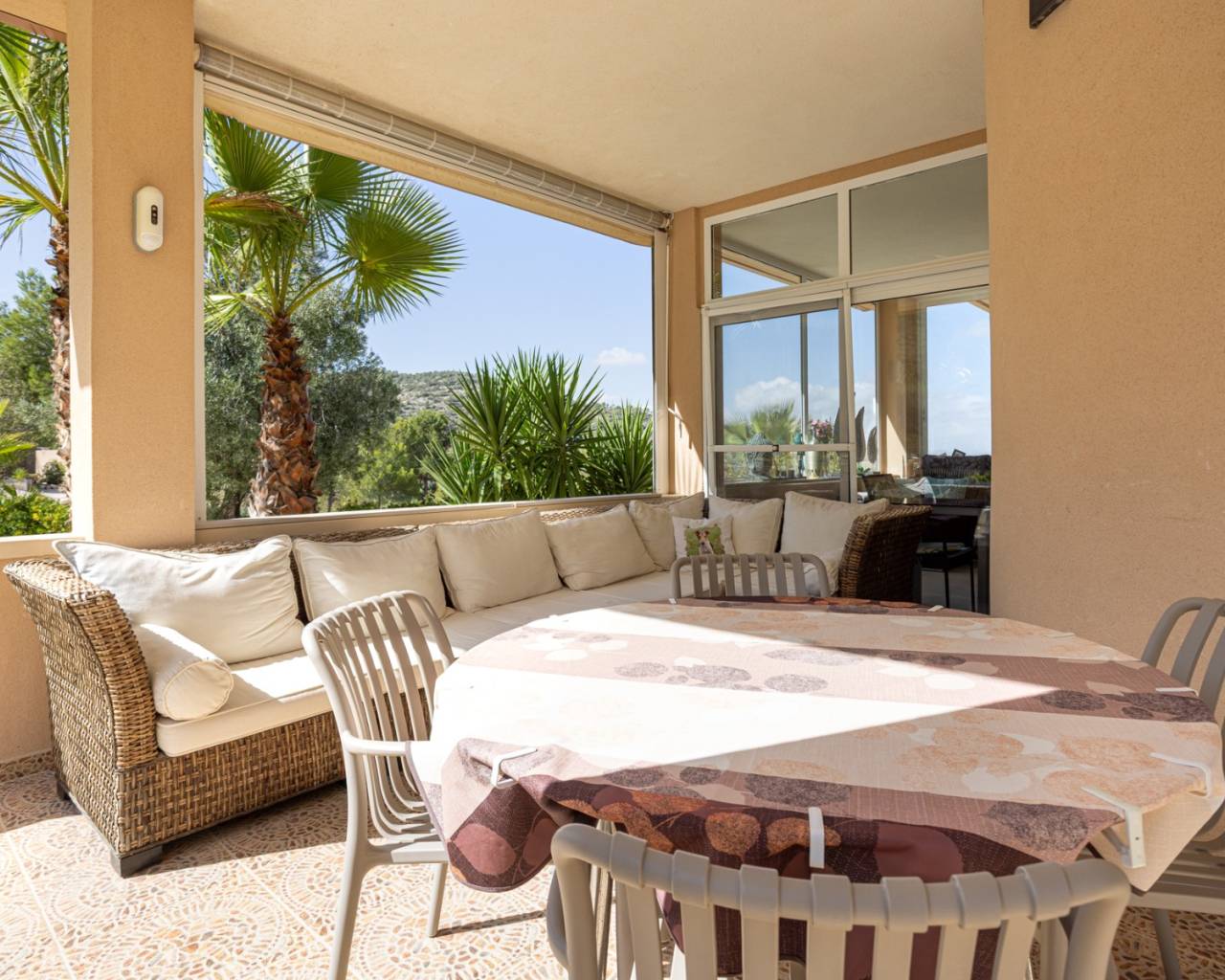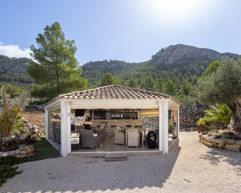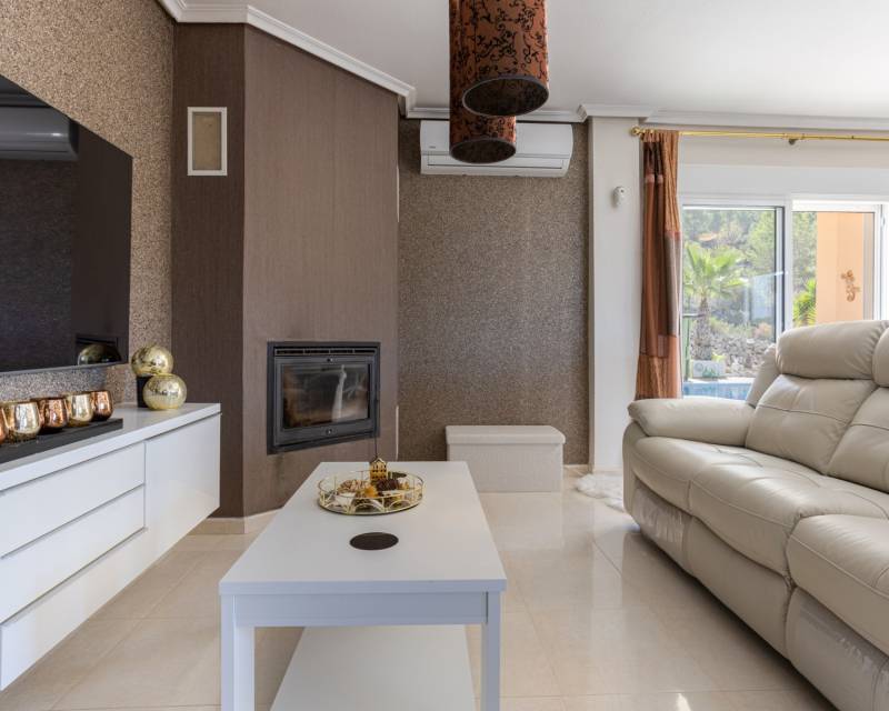 We present this beautiful detached villa, situated in a unique natural setting in La Zarza, where the tranquility of the countryside is combined with all modern amenities. Ideal as a permanent residence, holiday home, or even as a rural investment. Layout and interior spaces With a built area of 144 m², this charming home offers a functional and bright layout. The house features three spacious bedrooms (one of which has been converted into a garage, but is easily convertible), all with abundant natural light, and two carefully finished bathrooms, as well as a guest toilet for added convenience. The open-plan kitchen, fully equipped with appliances, flows seamlessly into the living-dining room, creating an open and welcoming space, ideal for enjoying with family or friends. The living room features a cozy wood-burning stove, perfect for winter evenings. The house also has central heating (propane) and air conditioning for optimal comfort year-round. One of the most special features of this property is the underfloor heating throughout and the use of a unique water system connected to the gas central heating system. The house is fully furnished and equipped, move-in ready, and features built-in wardrobes for extra storage. The master bedroom boasts a fantastic walk-in closet and an en-suite bathroom. A real eye-catcher in this bathroom is the jacuzzi with shower. The walk-in closet can even be converted into an additional small bedroom if desired. The house has 18 electric solar panels (On-Grid) for the house and another 6 panels for the solar boiler (house hot water, swimming pool heating). Exterior: Nature, privacy and outdoor recreation The true luxury of this property lies outdoors. Situated on an impressive 13,400 m² plot, surrounded by nature, it offers complete privacy and spectacular open views of the landscape. The meticulously maintained garden leads to a fantastic private swimming pool, ideal for cooling off in the summer, but also heated for cooler winter days. It also features a barbecue area, a covered veranda perfect for al fresco dining, a large sun terrace, and a solarium for enjoying unforgettable sunsets. There is also a closed garage and a private parking space on the plot. Location and accessibility Although the villa offers complete tranquility, it is very easily accessible: Recreation areas, restaurants and amenities are just a 10-minute drive away. Prestigious golf courses are 40 minutes away. Both the Mediterranean beaches and the nearest airports are within 60 minutes, making it an excellent choice for regular day trips or international visits. The south-west facing location guarantees sunshine and spectacular natural light for most of the day. Included extras Air conditioning Electric roller shutters (persianas) throughout the house Central heating (propane gas, 1000 liter tank) Water tank (21,000 liters) Fireplace (for wood) Solar panels (as support, the house is also connected to the electricity grid) Furnished Appliances (main kitchen appliances) Barbecue and outdoor seating area All automatic gates are operated with GSM WiFi Private swimming pool (heated by solar boiler) Garage and parking space Veranda, terrace and solarium Large private garden