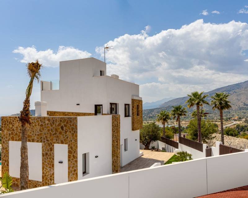 NEW BUILD VILLAS IN BALCON DE FINESTRAT New Build modern villas in Balcon de Finestrat. Wide and bright villas with 4 bedrooms and 4 bathrooms, open plan kitchen with living-dining area, beautiful terrace, private garden with the pool and parking space. Combination of wood and natural stone makes the house modern and rustic at the same time. Villas located 10 minutes from Benidorm and only 2 km from Finestrat. The ride to Tierra Mitica where you can spend nice time with family will take 6 minutes. This location makes it a great choice for a holiday home. Finestrat located in the Marina Baixa region of the Costa Blanca, close to neighbouring Benidorm and about 40 kilometres from the city of Alicante and the international airport. The village is situated on the mountainside of Puig Campana and offers beautiful views of the mountains, the coast and the Mediterranean Sea. Benidorm is just a five-minute drive from the properties and offers all the services you would need including shops, bars, restaurants, supermarkets, banks, pharmacies and several private international schools. Close to the beaches of Levante, Poniente and Cala de Finestrat, with more than 6km in length that are among the best in Europe awarded by the European Union with Blue Flags. All leisure services such as the theme parks of Aqua Natura, Terra Mítica, Terra Natura, Aqualandia and Mundomar, Sierra Cortina and Villaitana Golf courses, hiking and climbing in Puig Campana an incomparable natural setting or enjoy of nautical sports. 607
