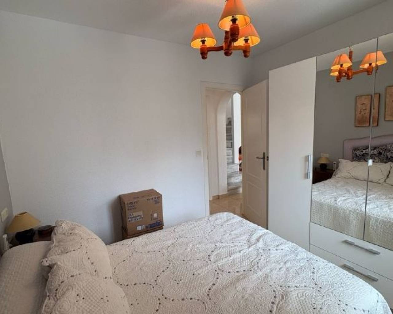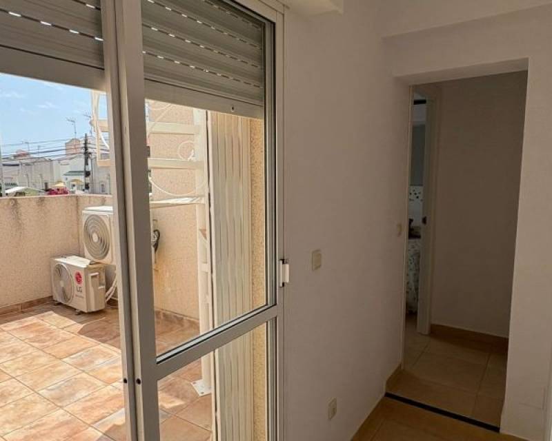 Discover this bright and cozy townhouse located in one of the most sought-after areas of Torrevieja, in the residential Lago Jardín. This property, ideal for both a permanent residence and vacations, combines comfort, spaciousness, and a unique natural environment. The home features 3 spacious bedrooms and 2 full bathrooms, arranged functionally to offer maximum comfort and privacy. The living-dining room is separated from a fully equipped independent kitchen, creating a perfect space to share with family or friends. Enjoy the warm Mediterranean climate on its private terrace-garden, perfect for outdoor breakfasts or peaceful evenings at sunset. Additionally, the property has a private solarium with stunning panoramic views of the iconic Laguna Rosa of Torrevieja, an ideal spot for sunbathing or relaxing while enjoying the landscape. The development has a large community pool surrounded by landscaped areas, offering a pleasant and safe environment for the whole family.Located in a quiet but well-connected area, with easy access to services, public transport, supermarkets, and just a few minutes from the beaches and the center of Torrevieja.