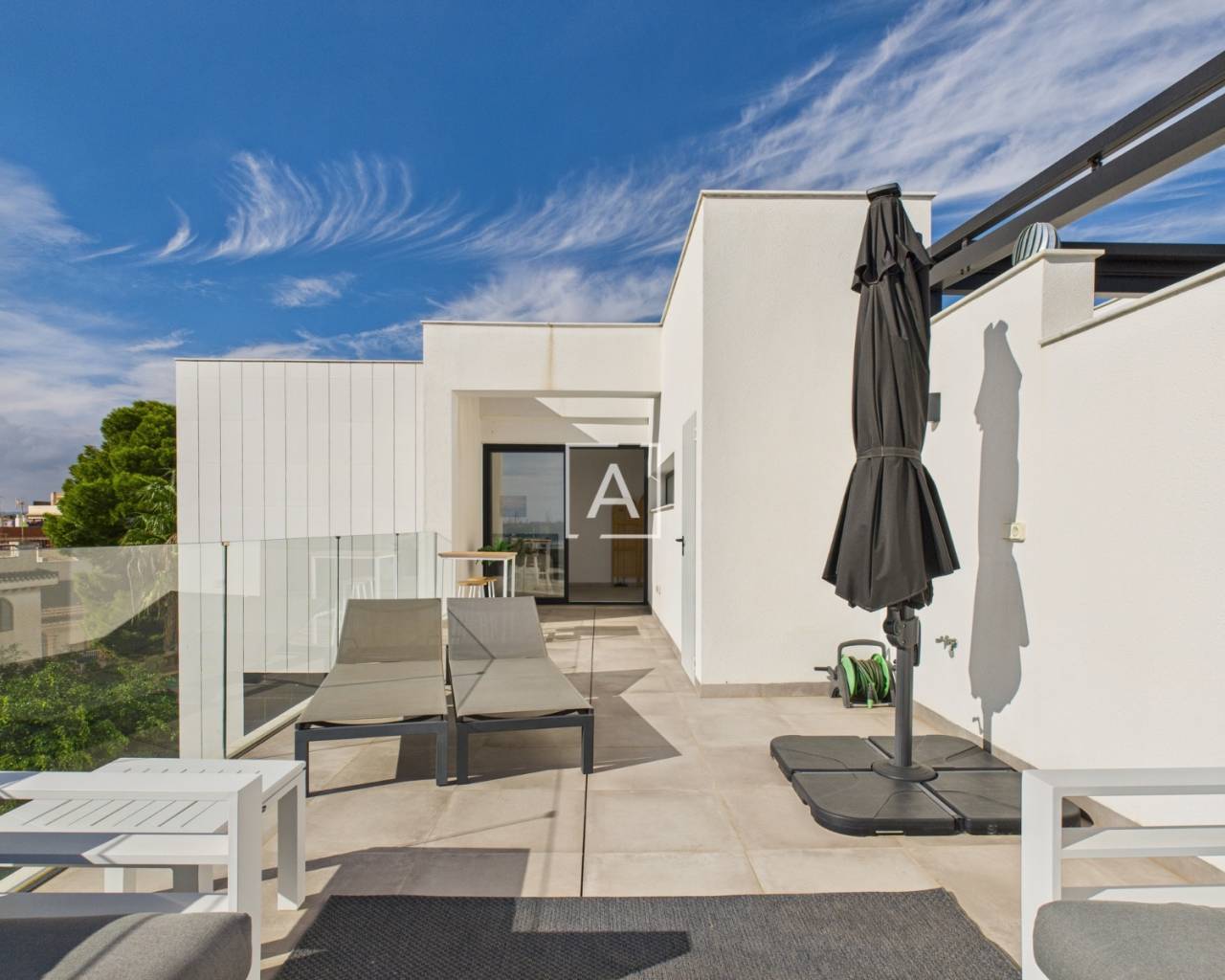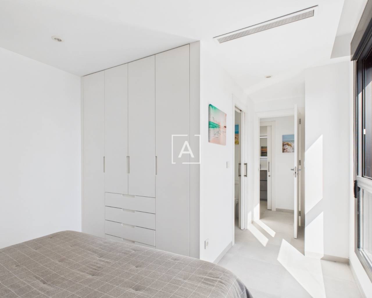 The property boasts two stunning terraces: one leading from the living room with front-row sea views, and a larger private rooftop solarium directly accessed from the master suite, offering the perfect retreat for sunbathing, dining, or simply unwinding beneath the Spanish sky.