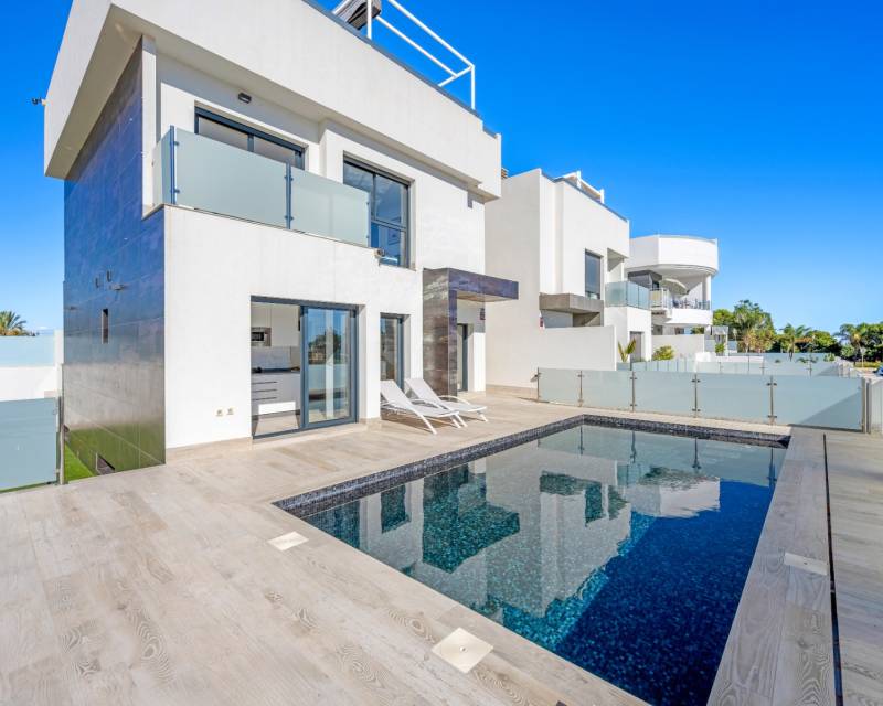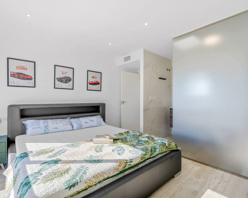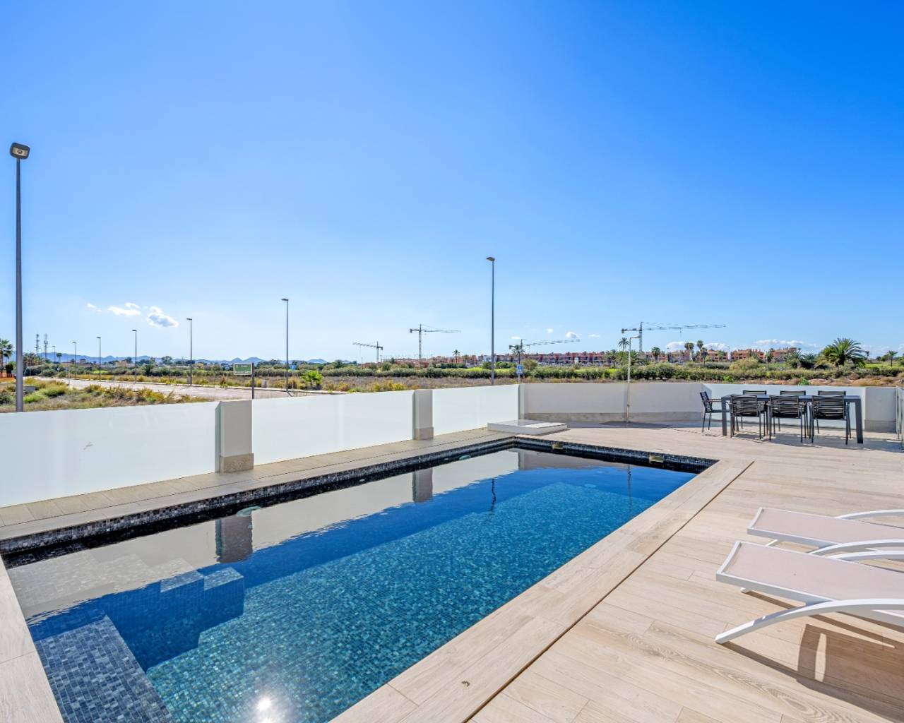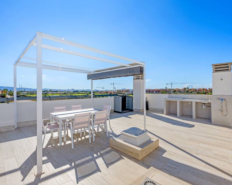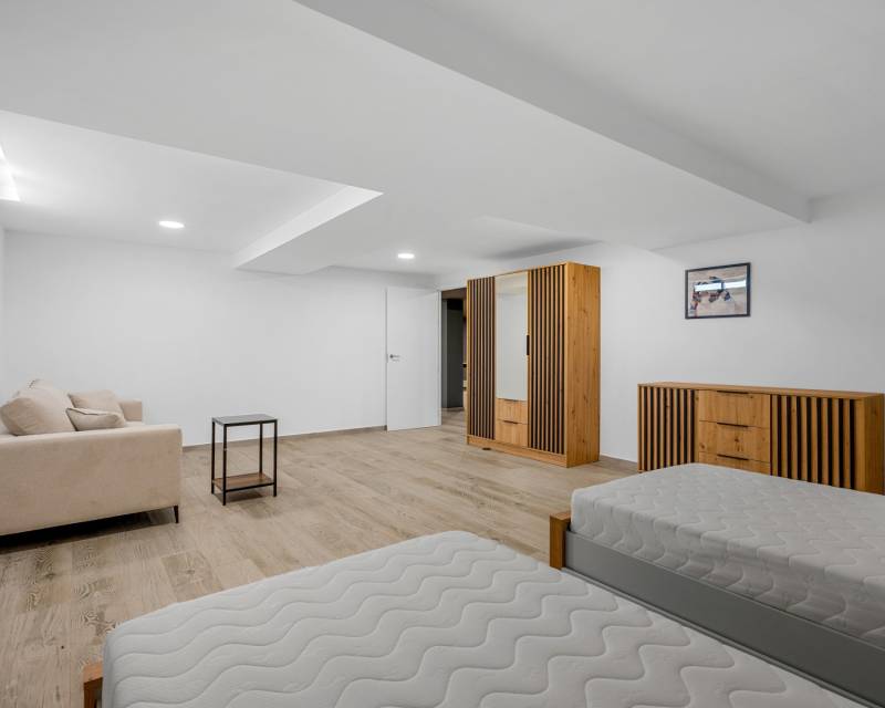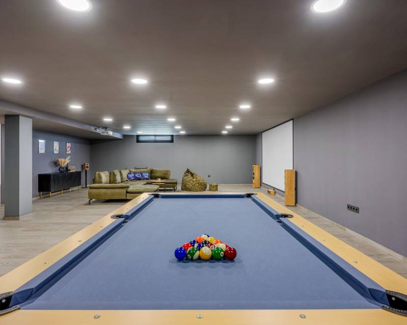 Discover this stunning modern 4-bedroom, 3.5-bathroom villa perfectly situated between Serena Golf and the shimmering coast of the Mar Menor. Combining style, comfort, and functionality, this fully furnished property offers the ideal balance between luxury living and coastal tranquility. With 192 sqm of usable space, the villa features a bright and airy open-plan living area that seamlessly connects to the outdoor terrace and pool. Its southeast orientation ensures natural light throughout the day, highlighting the elegant modern finishes and tasteful décor. The top-level solarium (83 sqm) provides a spectacular space for relaxation or entertaining, offering panoramic views of the golf course and the surrounding landscape. The huge basement is designed for leisure and convenience, boasting a cinema room, pool table area, and garage, along with an additional bedroom that comfortably accommodates up to four people — perfect for guests or family gatherings. Outside, enjoy a private swimming pool, dining area, and a green zone, ideal for soaking up the Mediterranean sun or enjoying peaceful evenings. Nestled in a quiet area with beautiful views, this villa offers privacy while being just minutes from golf, beaches, restaurants, and all local amenities. Key Features: 4 Bedrooms, 3.5 Bathrooms 192 sqm built + 83 sqm rooftop solarium Fully furnished, move-in ready Private pool and landscaped outdoor area Spacious basement with cinema, pool table, and garage Southeast orientation for optimal sunlight Peaceful location between Serena Golf & Mar Menor This villa is the perfect home for those seeking a modern Mediterranean lifestyle with a touch of luxury and relaxation.
