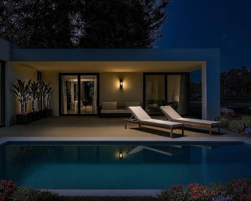 NEWLY BUILT VILLAS WITH POOL IN HONDON DE LAS NIEVES Discover the elegance and comfort of these beautiful detached villas ranging from 108 to 128 m2, designed to offer you an exceptional lifestyle, all on one floor. Enjoy the privacy offered by this villa, where you can relax in your own garden, create an oasis of tranquillity, or cool off in your private pool to enjoy the warm summer days. The property is distributed into two large areas: Day area: Here we find a spacious living-dining room with an open-plan kitchen (kitchen furniture included) that connects to the large modern porch through two large windows, leading to the landscaped outdoor area and the pool. As an extra space, there is a laundry area strategically located in the layout of the house, which is easily accessible from anywhere in the property. Rest area: In this area there are 3 bedrooms. The master bedroom has a large dressing room and en-suite bathroom. There is also a second bathroom for the other bedrooms and the rest of the house. Located in a quiet, residential area, this villa allows you to enjoy the privacy and tranquillity you desire, while being within easy reach of amenities, shops, supermarkets and restaurants. It is the perfect balance between peaceful seclusion and the comforts of modern living. In this development in Hondón de las Nieves, every day is an opportunity to connect with the world. Hondón de las Nieves is a municipality in the Valencian Community, Spain. It is located in the south-west of the province of Alicante, in the Vinalopó Medio region. The beaches and Alicante airport are very close by, only 30 minutes away by car.