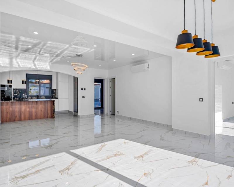 This impressive 4-bedroom, 4-bathroom detached villa offers luxury living in an exceptional location. Set on a generous 640m² plot with a 180m² build, the home enjoys complete privacy, a private pool, and outstanding panoramic, lake, garden, and pool views. Beautifully presented and in excellent condition, the villa features an open-plan living and dining area, a fully fitted American-style kitchen, and four spacious bedrooms, each with built-in wardrobes. Several bedrooms benefit from ensuite bathrooms, providing comfort and convenience for family and guests. A separate toilet and a well-designed utility room further enhance everyday practicality. The south-facing orientation ensures natural light throughout the day, while the solarium offers the perfect space to relax and enjoy the impressive views. Outdoors, the villa boasts easy off-road parking for up to four vehicles, accessed through electric gates, along with beautifully maintained garden areas surrounding the pool. Modern features include air conditioning, ceiling fans, underfloor heating, electric blinds, electric shutters, white goods, and a VDO/entry phone system, ensuring both comfort and security. The home is equipped with high-quality finishes throughout and is ready for immediate enjoyment. Located just 15 minutes from the beach, 30 minutes from the airport, and 5 minutes from amenities, with golf reachable in 10 minutes, this property offers the perfect blend of luxury, convenience, and tranquility. Its proximity to local facilities makes it ideal for both permanent living and a high-end holiday retreat.