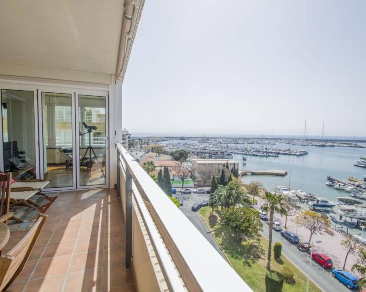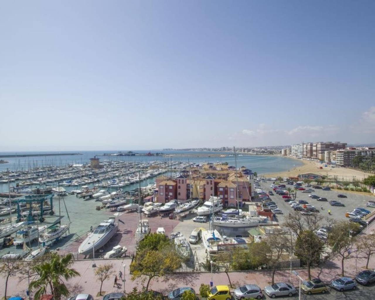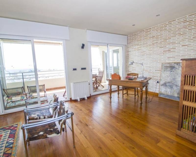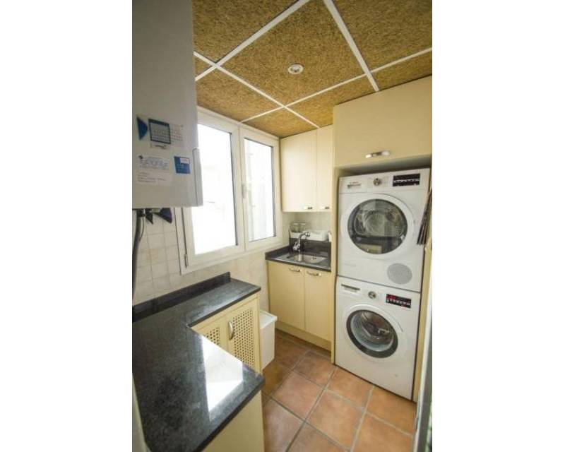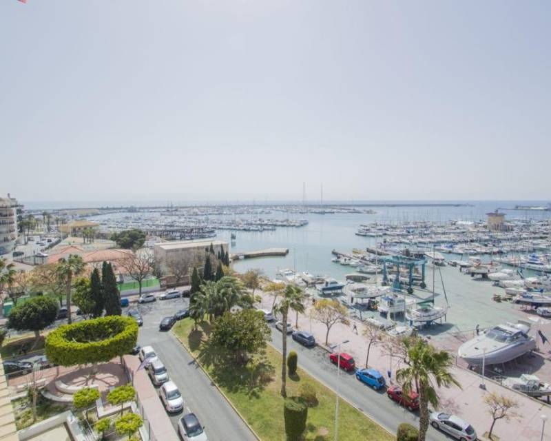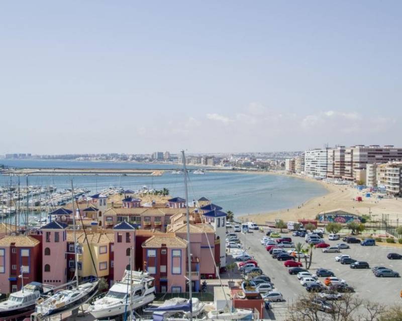 We are privileged to be able to offer this spectacular apartment in central Torrevieja. Three large bedrooms, one with en-suite bathroom and walking closet. Adjacent to the other bedrooms is another bathroom. From the living room, kitchen and dining area you can enjoy a fantastic view of the Mediterranean Sea, the coast and the beautiful harbour. The kitchen is built with the highest quality white goods, stove and oven for the professional home cook. Descaling filters are available for incoming water to the entire apartment. There are also osmotic filters for drinking water and ozone filters for washing machines, which means that detergents can be excluded. Kitchen table in own design and living room furniture in exclusive design, including a by the French brand Le Corbusier. Solid wood flooring throughout the home, as well as solid specially designed doors and handles. In the patio, with entrance from the kitchen, there is a washing machine and dryer. AC is available in parts of the apartment as a complement to the existing gas heating. Balcony for cozy evenings at home. Only 100 meters to the beach and all the city's facilities.