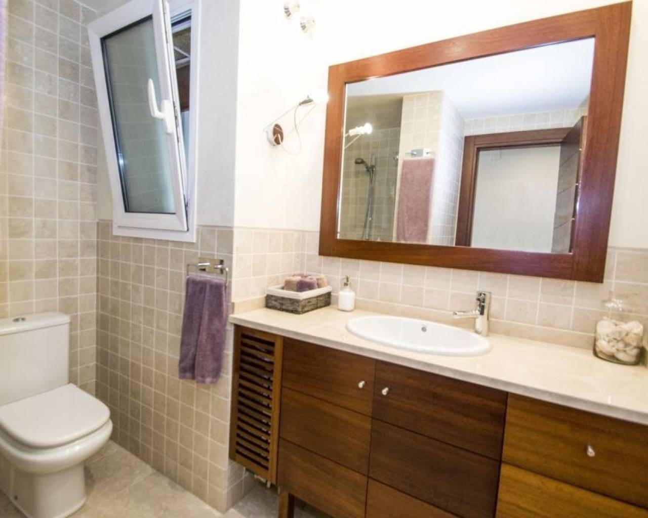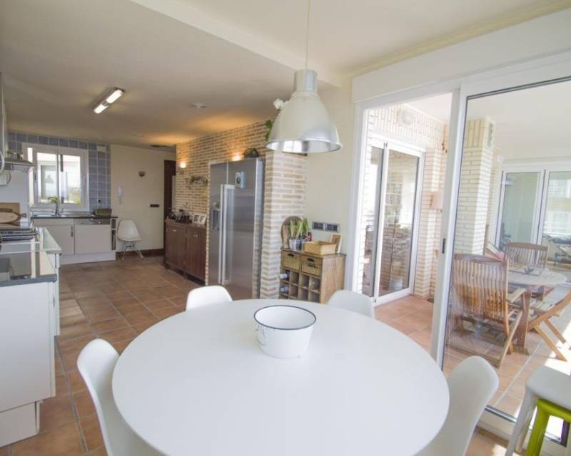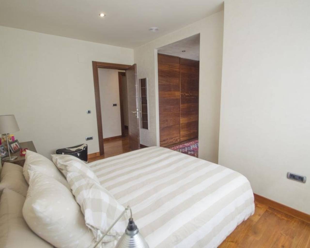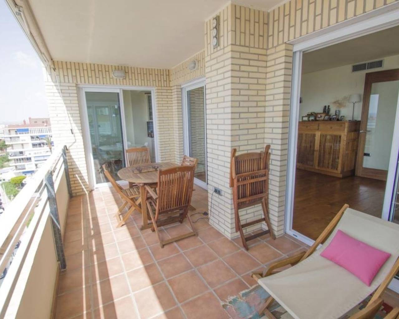 We are privileged to be able to offer this spectacular apartment in central Torrevieja. Three large bedrooms, one with en-suite bathroom and walking closet. Adjacent to the other bedrooms is another bathroom. From the living room, kitchen and dining area you can enjoy a fantastic view of the Mediterranean Sea, the coast and the beautiful harbour. The kitchen is built with the highest quality white goods, stove and oven for the professional home cook. Descaling filters are available for incoming water to the entire apartment. There are also osmotic filters for drinking water and ozone filters for washing machines, which means that detergents can be excluded. Kitchen table in own design and living room furniture in exclusive design, including a by the French brand Le Corbusier. Solid wood flooring throughout the home, as well as solid specially designed doors and handles. In the patio, with entrance from the kitchen, there is a washing machine and dryer. AC is available in parts of the apartment as a complement to the existing gas heating. Balcony for cozy evenings at home. Only 100 meters to the beach and all the city's facilities.