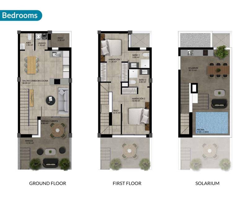 Modern Townhouses in Dolores with comunal pool Contemporary Homes Designed for Comfort and Style Discover this exclusive residential complex of 20 modern townhouses in Dolores, offering a perfect blend of space, style, and high-quality finishes. With up to 133 m² of living space, including expansive terraces, these homes are available in two or three-bedroom layouts, allowing you to choose the design that best suits your lifestyle. Each property spans three floors, including a private solarium, providing breathtaking open views and an ideal space for relaxation. The interiors feature integrated LED lighting, contemporary finishes, and an open-concept layout that enhances natural light. Premium Features & Optional Upgrades Spacious and bright interiors with high-quality finishes Three floors, including a rooftop solarium Community swimming pool, perfect for relaxation Optional private jacuzzi or rooftop pool (with extra cost) Private parking space for each home Modern kitchens and bathrooms designed for functionality and elegance Prime Location – A Tranquil Setting with Excellent Connectivity Located in Dolores, a charming town in the Vega Baja region of Alicante, this development offers the perfect balance of peaceful living and easy access to essential services. The area is known for its beautiful natural surroundings, agricultural landscapes, and relaxed atmosphere. Distances to Key Points of Interest: Beaches of La Marina & Guardamar del Segura – 10 km (10 minutes) Alicante Airport – 30 km (25 minutes) Murcia-Corvera Airport – 60 km (45 minutes) Golf courses – 10 km (10 minutes) Shopping centers (La Zenia Boulevard, Habaneras) – 12 km (15 minutes) A Perfect Home on the Costa Blanca These modern townhouses in Dolores offer the ideal combination of tranquility, modern living, and proximity to key destinations. Whether you're looking for a holiday home or a permanent residence, this development provides a comfortable and stylish lifestyle in a privileged location. Don’t miss out! Contact us today for more information or to schedule a visit.
