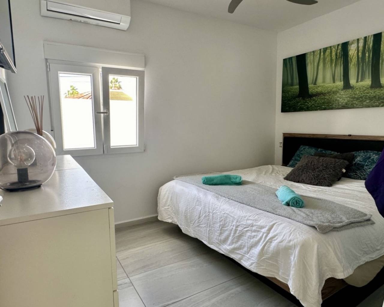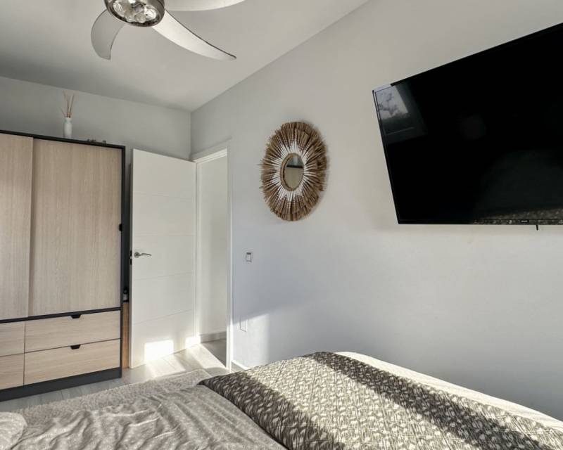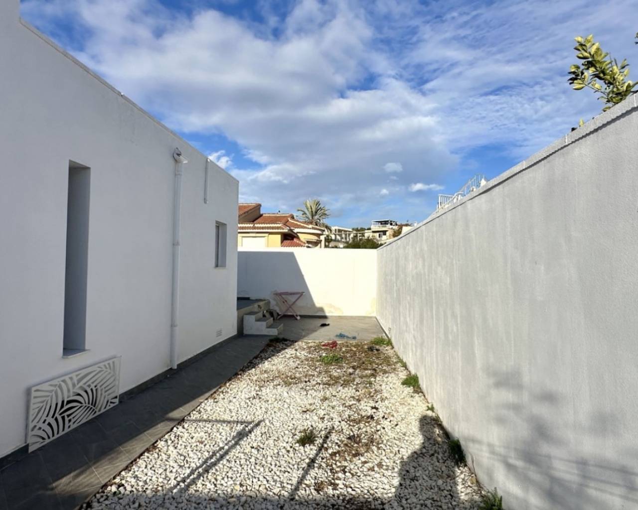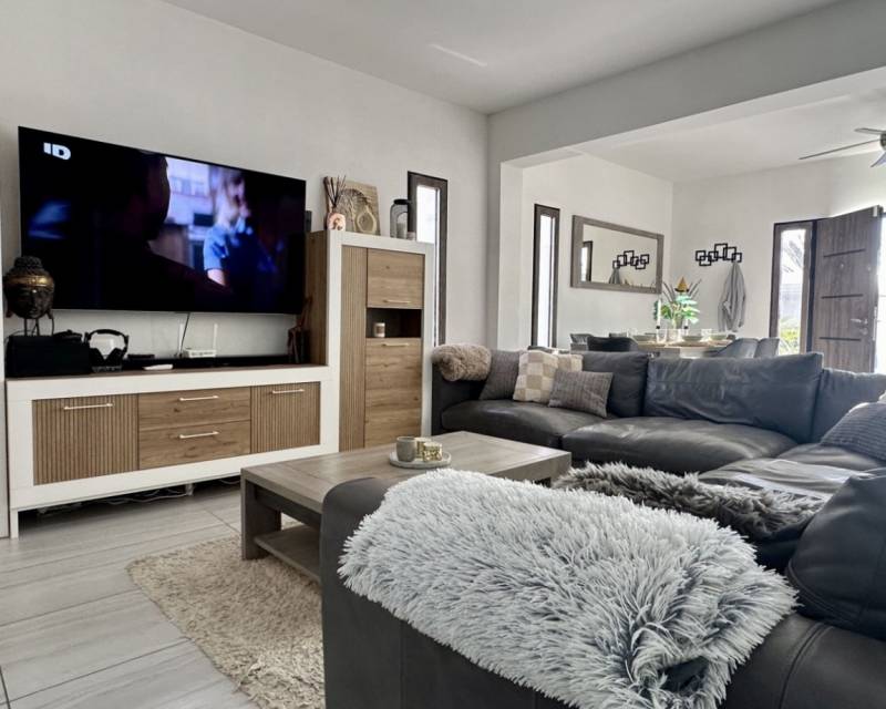 Discover a beautifully renovated, contemporary detached villa located in the residential heart of Ciudad Quesada, Rojales. This stylish home combines modern design with comfortable living spaces across two levels, set on a generous plot of approximately 500 m². The property is ideal for families seeking spacious accommodation or as a desirable holiday residence. The villa offers a built area of 132 m² and features five well-sized bedrooms and three modern bathrooms, giving plenty of room for family, guests, or flexible living arrangements. The layout flows around bright, open-plan living areas that seamlessly connect to outdoor terraces and garden spaces — perfect for enjoying the Mediterranean climate. Externally, the home boasts an elegantly landscaped garden with paved terraces designed for outdoor living and entertaining. A standout feature is the private heated pool (8 × 4 m), providing year-round enjoyment. The outdoor space also includes a covered exterior kitchen/bar area, ideal for al fresco dining and social gatherings. Additional highlights include air conditioning in all rooms, built-in wardrobes, south-facing orientation for excellent natural light, and a garage space. The property is finished to a high standard with contemporary touches throughout and is located in a quiet, sought-after neighbourhood