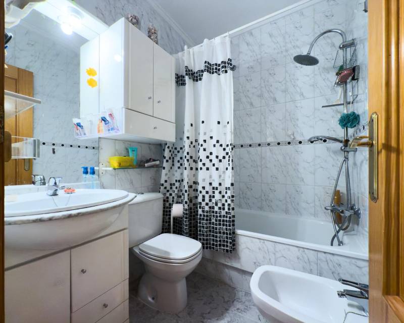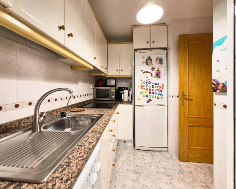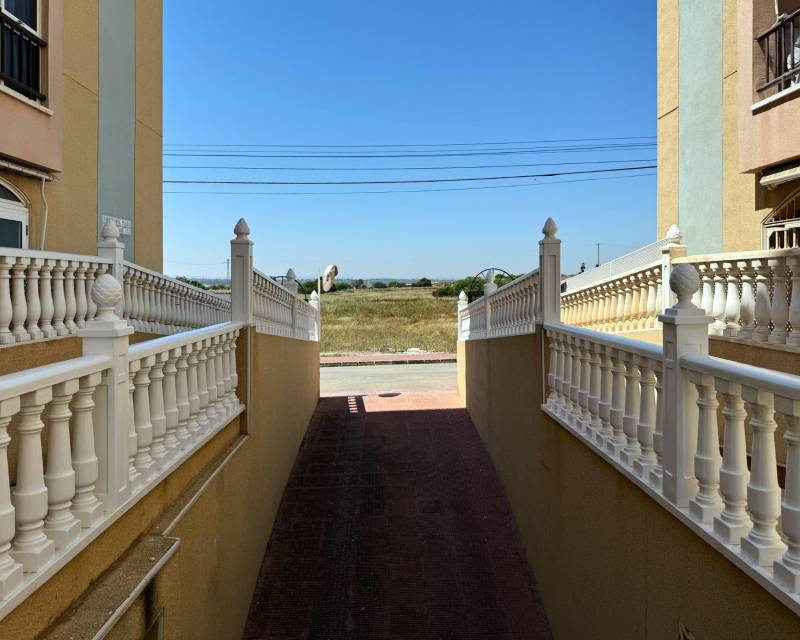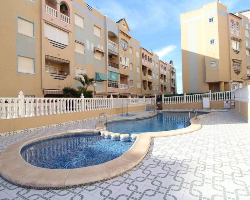 Looking for comfort, location, and extra outdoor space? This charming ground floor apartment has it all. Located in a gated residential complex with a communal pool, and just 100 meters from La Mata beach, you can enjoy the Mediterranean lifestyle with all the conveniences.~~The property features two double bedrooms, a full bathroom with bathtub, and a separate kitchen that opens directly onto a spacious private patio of approximately 15 m2. This outdoor area provides excellent ventilation and natural light, and is perfect for relaxing, dining, or extra storage.~~It is sold unfurnished, allowing you to decorate and personalize it to your taste. The home is equipped with wall-mounted split air conditioning and a retractable awning to keep cool on hot summer days.~~An ideal opportunity whether you’re looking for a year-round residence or a holiday retreat by the sea. Come and see it – you’ll fall in love with its location and potential!