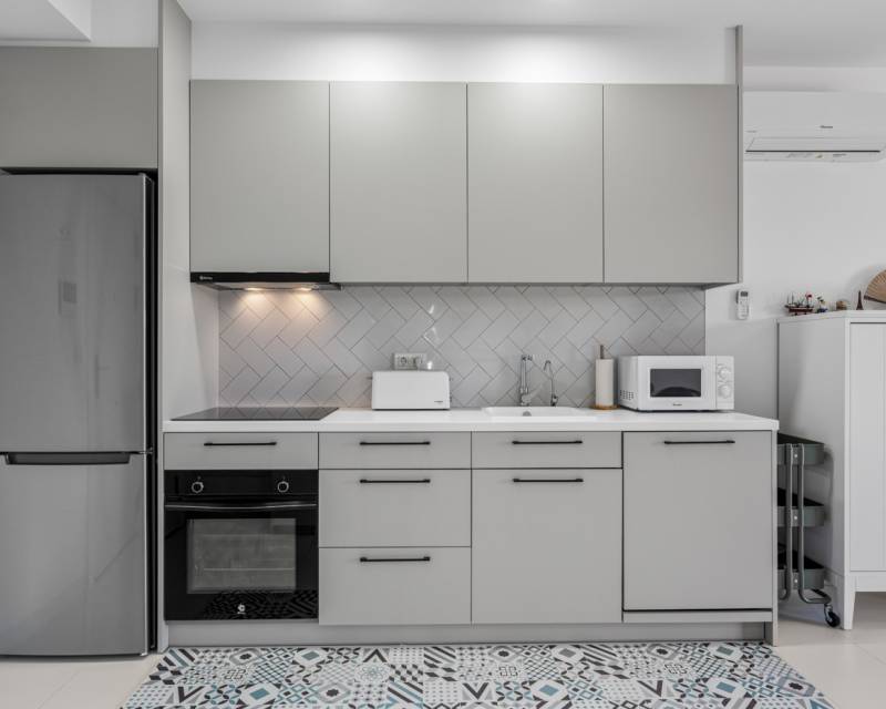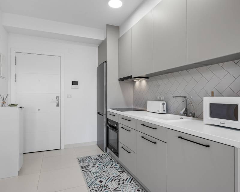 Located in one of the most sought-after areas of San Miguel de Salinas, this attractive corner apartment is ideal for those who value peace, light and comfort, while still being close to the coast and all amenities. The property offers two bedrooms and two bathrooms and features a practical open layout that enhances the sense of space. Thanks to its southwest orientation, the apartment enjoys abundant natural light and pleasant afternoon and evening sun. The living area opens onto a balcony, an inviting spot to relax and enjoy the open surroundings. The apartment is sold fully furnished and is ready for immediate use. It also includes a private underground parking space and a spacious storage room, ideal for extra storage, bicycles or beach equipment. Within the complex, residents can enjoy a large communal swimming pool, perfect for cooling off on warm days. The location is a key advantage. Las Colinas Golf and Country Club is just a few minutes away by car. The centre of San Miguel de Salinas, with its local shops, daily services and weekly market, is close by. The beaches of Orihuela Costa, La Zenia Boulevard and Torrevieja can all be reached within a short drive. This corner apartment is an excellent choice as a holiday home, rental investment or comfortable permanent residence, combining tranquillity, sunshine and a highly desirable location with excellent value for money.