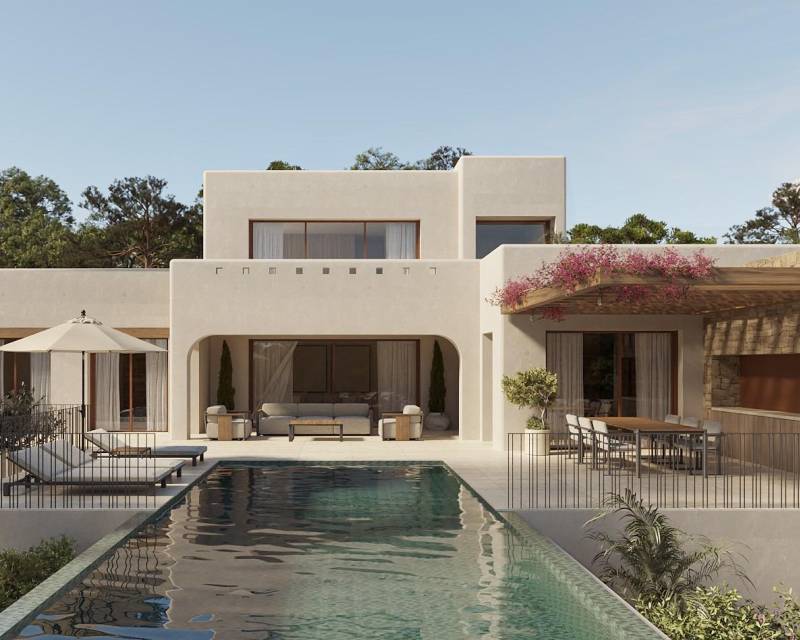 Luxury Ibizan Style Villa in La Fustera (Benissa Costa) Just 1 km from the Beach Mediterranean Retreat on the Northern Costa Blanca This exclusive collection of four single family villas is located in La Fustera, a prestigious residential area of Benissa on the Northern Costa Blanca. Blending the charm of Ibizan architecture with contemporary Mediterranean elegance, these homes offer privacy, sea views and a refined lifestyle in one of the most desirable coastal enclaves of the region. La Fustera is known for its crystal clear coves, natural surroundings and low density residential atmosphere. The villas are just 1 km from La Fustera Beach, allowing easy access to one of the most beautiful beaches in the area, with beachfront restaurants and scenic walking paths along the coastline. Prime Location Close to Calpe and Moraira The development enjoys a strategic position only 10 minutes by car from Calpe, Moraira and the center of Benissa, providing access to supermarkets, marinas, golf courses, international schools and medical services. The area combines tranquility with excellent connectivity to the main destinations of the Costa Blanca. Modern Layout with Sea Views and Infinity Pool This villa is distributed over two levels on a generous 876 m2 plot with double private parking. The ground floor features two bedrooms sharing a bathroom, a guest toilet with laundry area, and a bright living room with open plan kitchen. Large sliding doors connect the interior with a spacious terrace and private infinity pool overlooking the sea. On the upper floor, the master bedroom includes an en suite bathroom, dressing room and access to an impressive 54 m2 open terrace with panoramic sea views. Ibizan Design and High Quality Finishes Inspired by the clean lines and natural materials of Ibiza, the architecture combines cubic volumes, wood and stone to create warm and timeless spaces. Large windows maximize natural light and create a seamless flow between indoor and outdoor living. The villas are delivered with premium specifications including: Fully furnished kitchen with appliances Designer bathrooms with furniture Electric blinds Video intercom and alarm system Aerothermal system for hot water and underfloor heating Fully installed ducted air conditioning Distances to Key Points of Interest La Fustera Beach 1 km Calpe 7 km Moraira 8 km Ifach Golf Club 6 km Alicante Airport 80 km Valencia Airport 110 km Experience the Essence of Mediterranean Living If you are seeking a contemporary villa where design, comfort and nature come together in perfect harmony, this is your opportunity. Contact us today to receive more information or to arrange a private viewing of these exclusive villas in La Fustera, Benissa Costa. 607