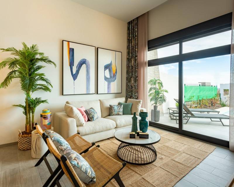 New Build Semi Detached Villas with Private Pool at La Finca Golf Resort Algorfa Modern Villas in a Prestigious Golf Resort on the Costa Blanca Discover these elegant new build semi detached villas located in the exclusive La Finca Golf Resort in Algorfa, one of the most desirable residential areas on the Costa Blanca South. Surrounded by nature, golf courses and peaceful landscapes, this development offers the perfect balance between tranquility and proximity to essential services, beaches and leisure facilities. La Finca Golf Resort is well known for its championship golf course, luxury hotel, restaurants and wellness facilities. The nearby town of Algorfa maintains its traditional Spanish charm while offering convenient access to larger coastal destinations such as Torrevieja and the beautiful beaches of the southern Costa Blanca. Stylish Single Level Villas with Spacious Layouts Each villa offers approximately 105 m2 of built area on generous plots from 450 m2. The homes are designed on a single level to maximize comfort and accessibility while providing bright and open living spaces. The property features three spacious bedrooms with built in wardrobes and two modern bathrooms, including a master bedroom with en suite bathroom. Bathrooms are equipped with mirrors and walk in showers with glass screens for a clean and contemporary design. The open plan kitchen integrates seamlessly with the living and dining area and includes a practical breakfast bar, creating a bright and functional space ideal for both everyday living and entertaining. A separate laundry room adds extra convenience to the home. An external staircase leads to the large private rooftop solarium, providing additional outdoor space to relax and enjoy the Mediterranean climate. Private Pool and Outdoor Mediterranean Lifestyle Large sliding glass doors connect the interior living area with the outdoor terrace and landscaped garden. Each villa includes a private swimming pool, creating the perfect environment for relaxing afternoons, outdoor dining and enjoying the warm Costa Blanca weather. The homes also include fully installed ducted air conditioning to ensure year round comfort. Prime Location Near Beaches Golf and Amenities These villas are ideally located within walking distance of the golf course and close to many key destinations in the region. La Finca Golf Resort golf course walking distance Guardamar del Segura beaches 20 km Zenia Boulevard shopping center 15 km Torrevieja 20 km Alicante Elche Airport 40 km Region de Murcia International Airport 55 km The area is also surrounded by additional golf courses, nature parks and coastal promenades, offering an excellent lifestyle for golf enthusiasts and beach lovers alike. Secure Your Villa at La Finca Golf Resort These new build semi detached villas combine modern design, private outdoor living and a prime golf resort location. Contact us today to receive more information or schedule a visit and discover your new home at La Finca Golf Resort in Algorfa. 607