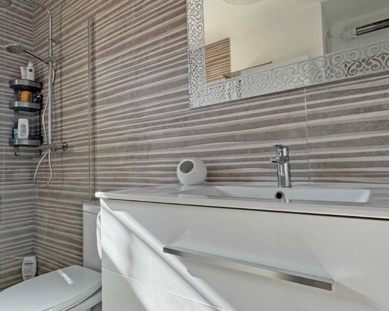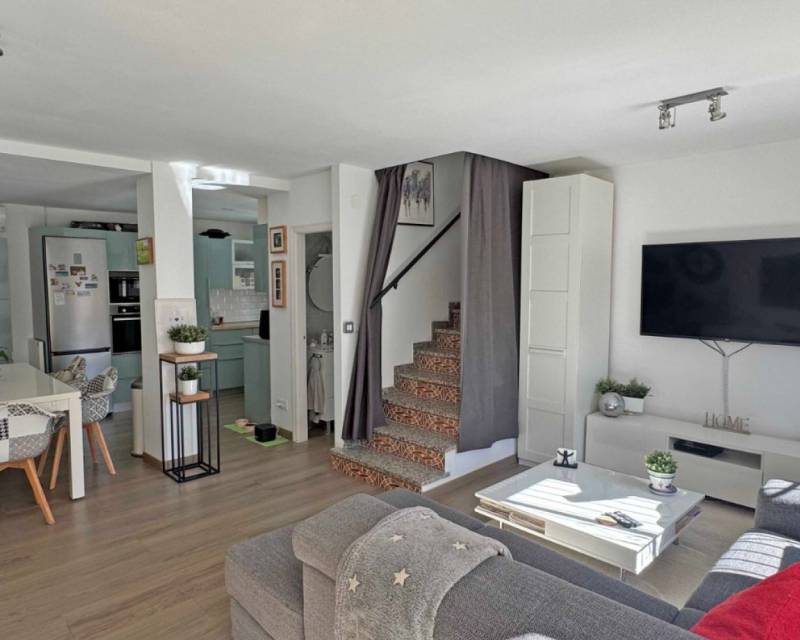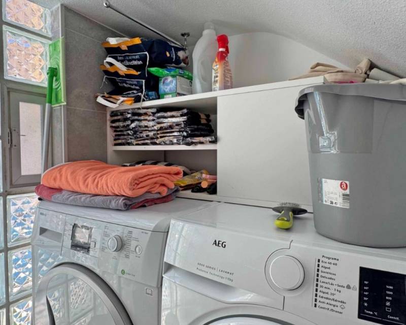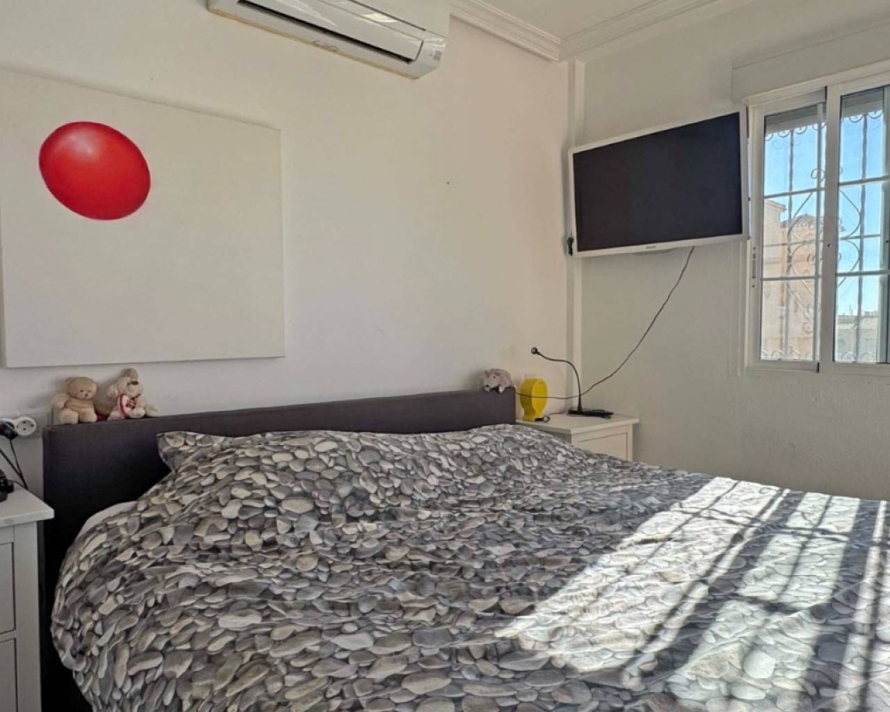 Located in the sought-after Zodiaco V community, this beautifully renovated Zodiaco-style quad villa is an excellent property for sale in Villamartín Orihuela Costa, offering modern living, generous outdoor space, and a fantastic Mediterranean lifestyle close to all amenities. The property has been completely refurbished throughout, including new flooring, modern kitchen, updated bathrooms, electrics, plastering, and contemporary lighting, creating a stylish and move-in-ready home. Set on a spacious private plot, the villa features a large tiled terrace and a private swimming pool with heated Jacuzzi section, perfect for enjoying the Costa Blanca climate all year round. The outdoor space provides plenty of room for sunbathing, outdoor dining, and entertaining guests. Residents also benefit from access to a communal swimming pool within the urbanisation. Inside, the ground floor offers a bright lounge-dining area, a modern fitted kitchen, and a contemporary bathroom with walk-in shower and utility area. Upstairs you will find two double bedrooms with fitted wardrobes and a fully renovated family bathroom. The master bedroom enjoys access to a private balcony. From the landing, stairs lead to the private roof solarium, finished with artificial grass and offering an ideal space for relaxing or entertaining. On this level there is also an additional air-conditioned room, perfect as a third bedroom, home office, or storage space. The villa is located just 500 metres from shops, bars, restaurants, and public transport, while La Fuente commercial centre, Villamartín Plaza, Zenia Boulevard, and several championship golf courses are all within easy reach. Thanks to its excellent location and full renovation, this property is ideal as a home near golf courses and the beaches of Orihuela Costa, and represents an excellent holiday home or investment property in Costa Blanca South.